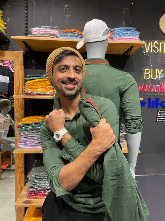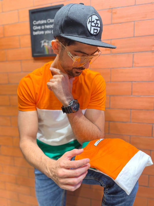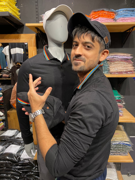 Black Ribbed Collar Tshirt with Multicolour Tipping