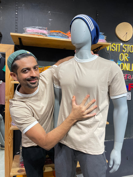 Ivory Relaxed Fit Contrast Rib Tshirt