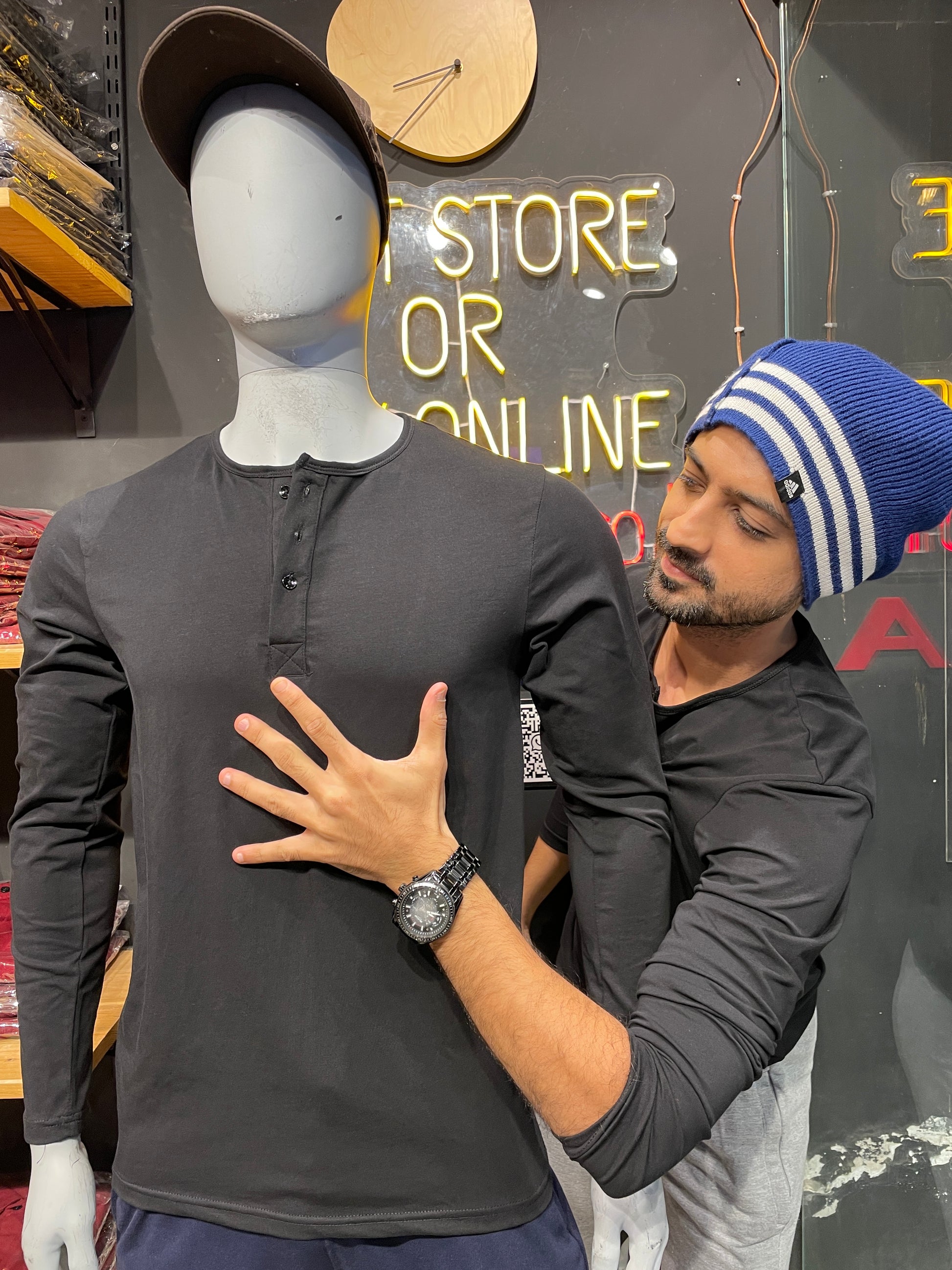 Black Stretchable Henley