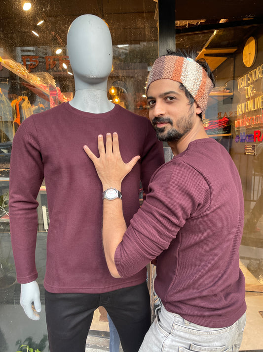 Burgundy / Steel Grey Double Placket Doc Sleeves Henley
