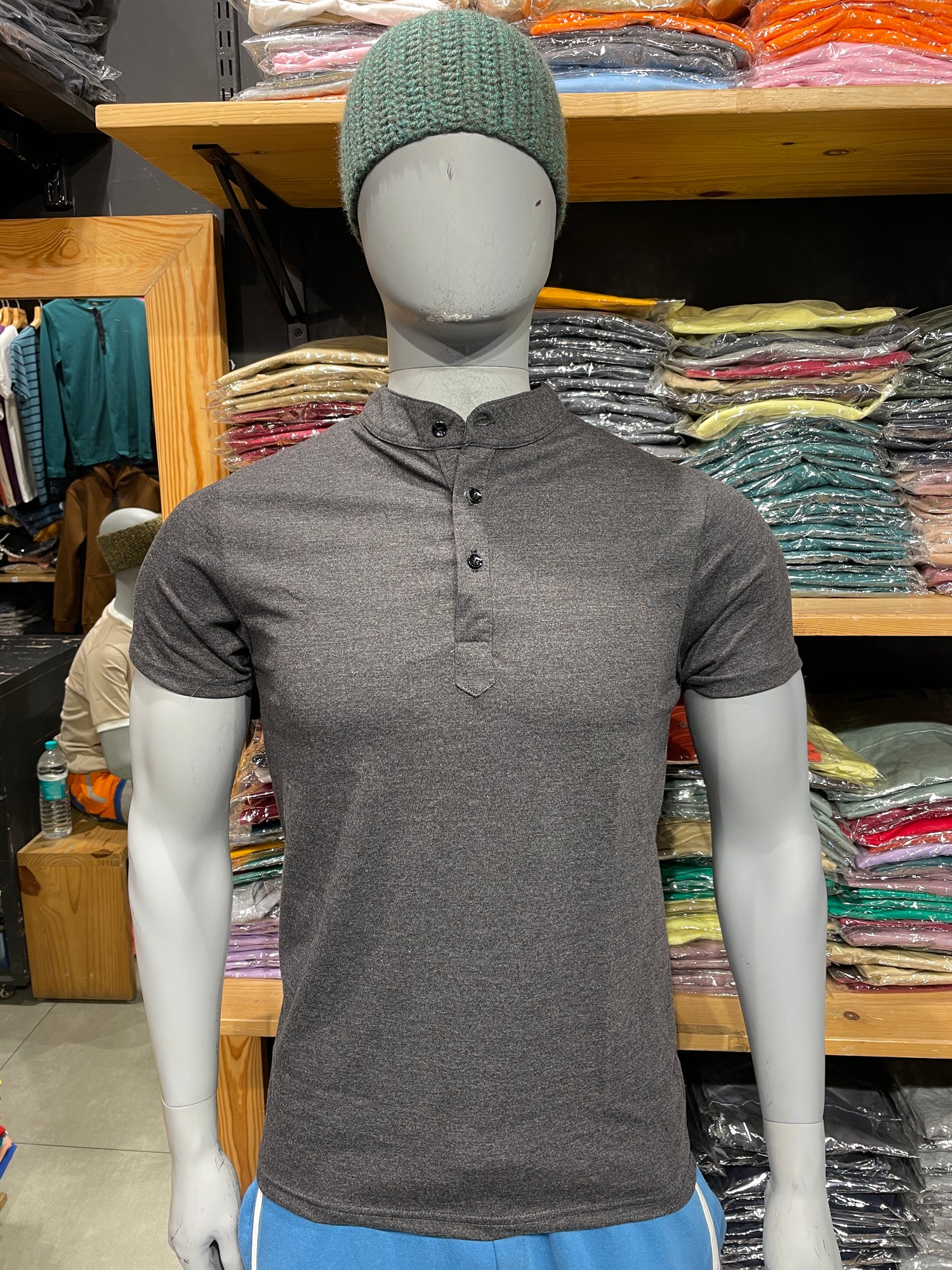 Anthra Melange Chinese Collar Tee