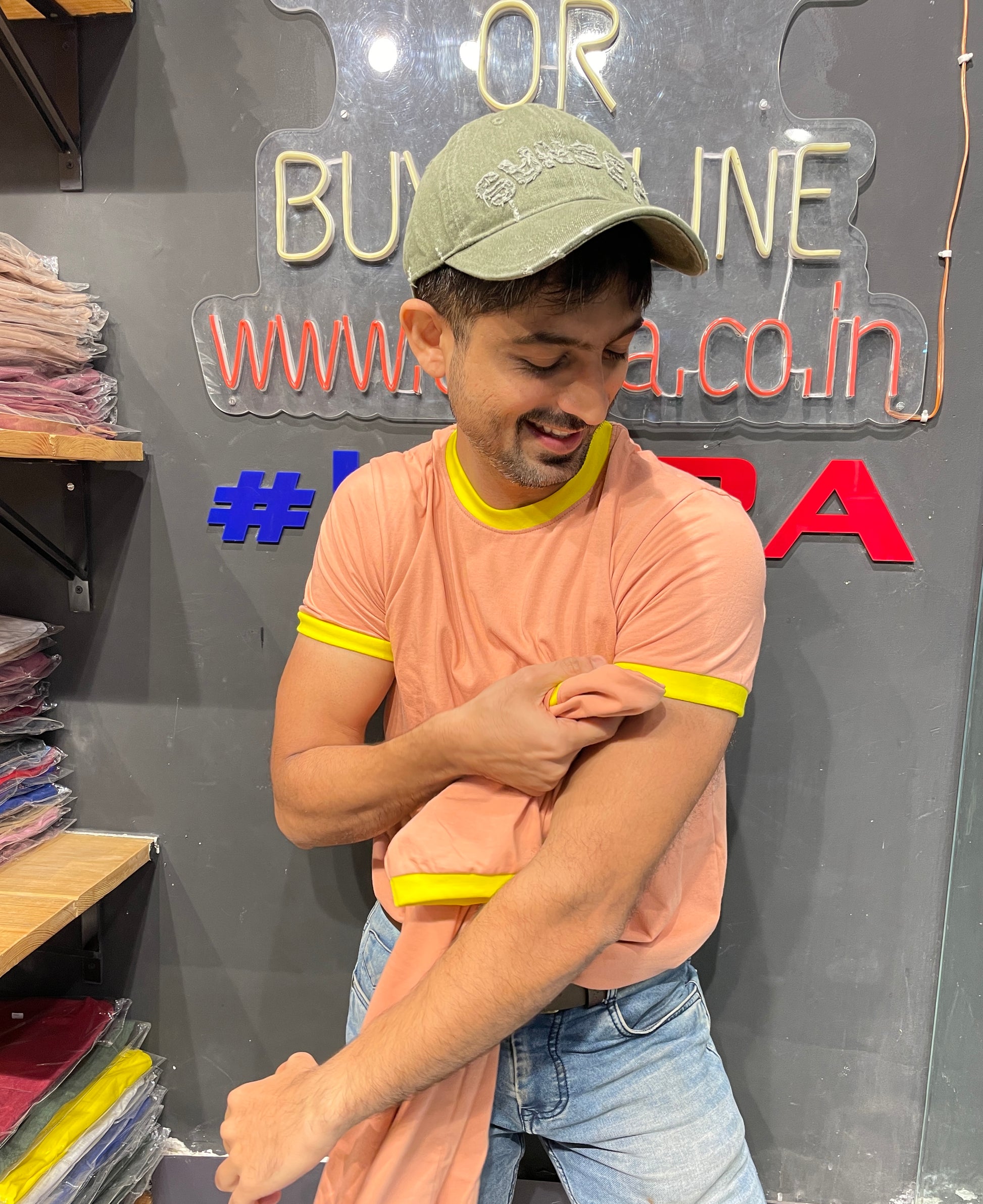Black Ribbed Collar Tshirt with Multicolour Tipping