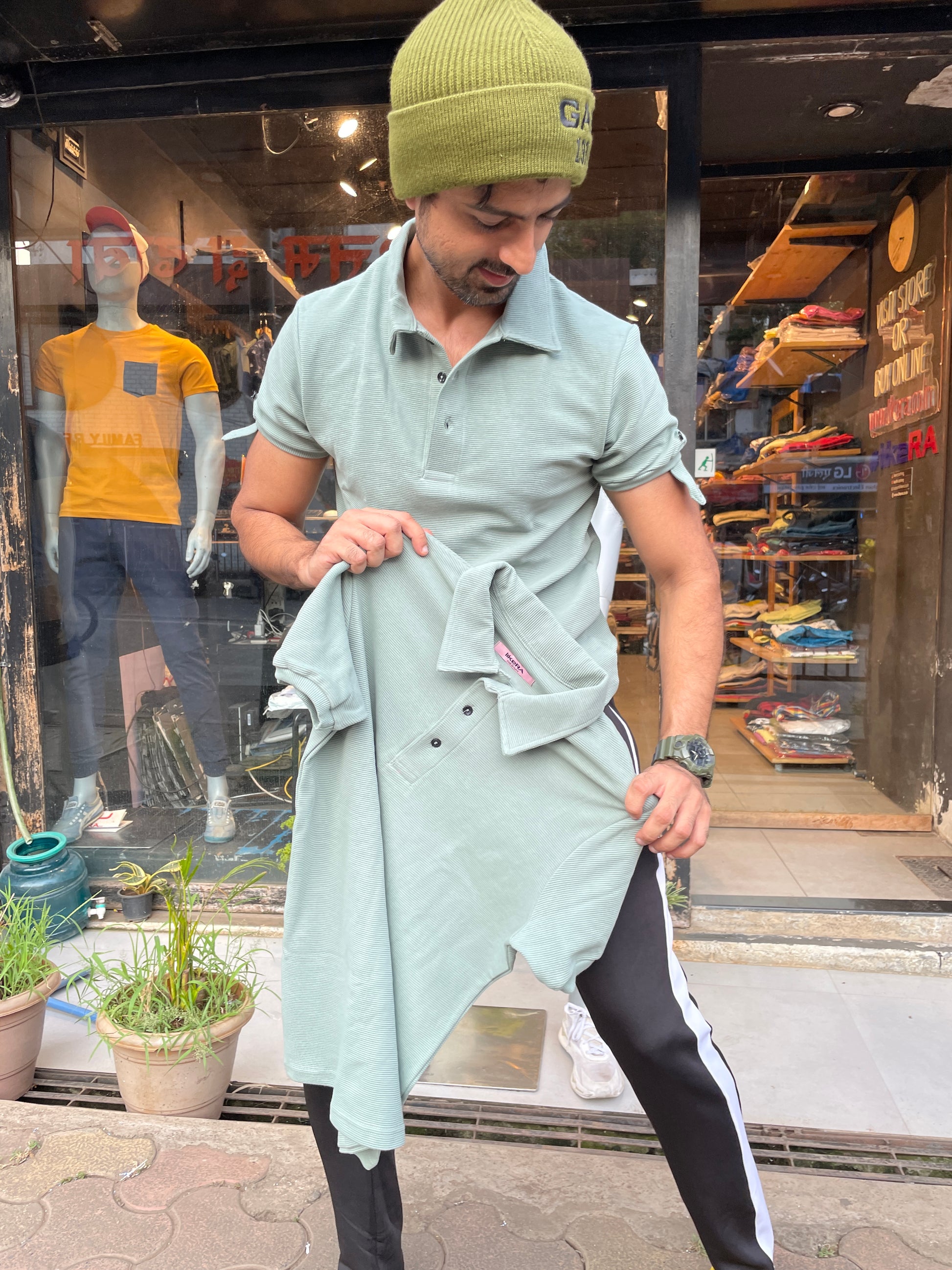 White Henley with Olive Placket